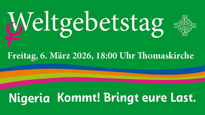Der anstehende Weltgebetstag 2026 kommt aus Nigeria und trägt den Titel „Kommt! Bringt eure Last“. Dieses Jahr wollen wir, Frauen und Männer, junge und ältere das Land, das Leben und den Glauben der Menschen aus Nigeria kennenlernen.