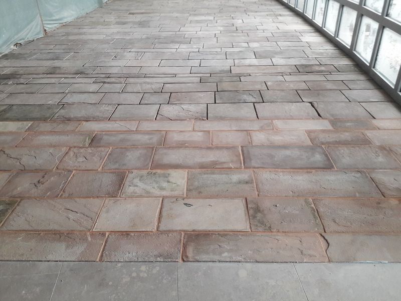 Der alte Fußbodenbelag aus Sandstein wird nach den Vorgaben des Denkmalschutzes in der Mitte des Foyers eingebaut. Die Montage der Attika durch den Dachdecker verzögert sich wegen Lieferschwierigkeiten. Die Außenfarbe ist bemustert und wird demnächst angebracht (wetterabhängig). Der Einbau der Küche erfolgt Anfang Januar.