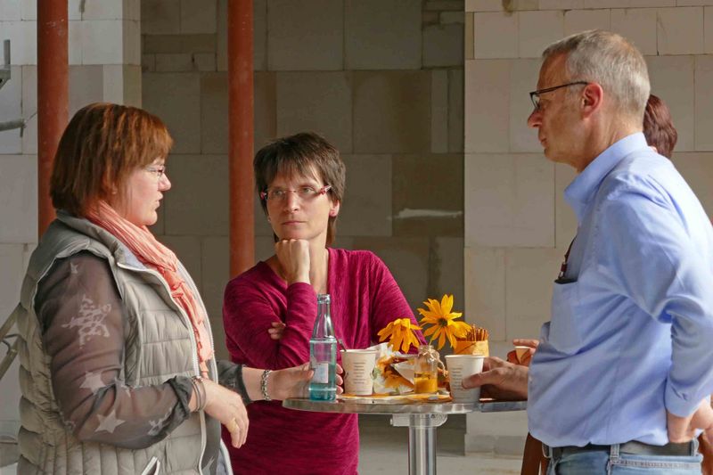 Eingeschränkte Inbetriebnahme: Der Nordtrakt mit großem Saal und Küche kann voll genutzt werden. Der im Südtrakt liegende Sitzungsraum darf nur mit max. 3 Personen besetzt werden, da ein Fluchtweg nicht voll zur Verfügung steht (Gerüst). Der Kirchraum darf nur mit max. 300 Besuchern genutzt werden.