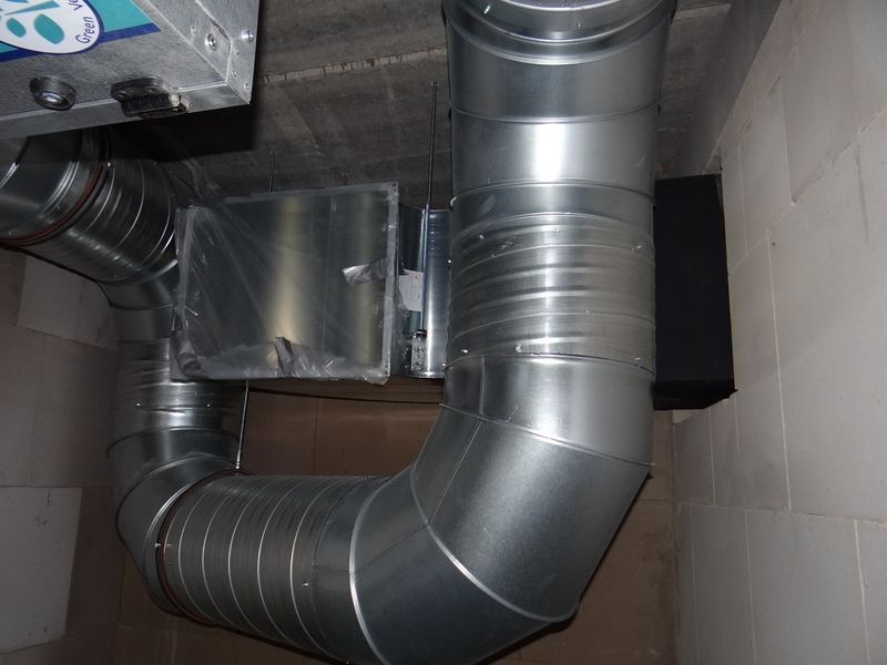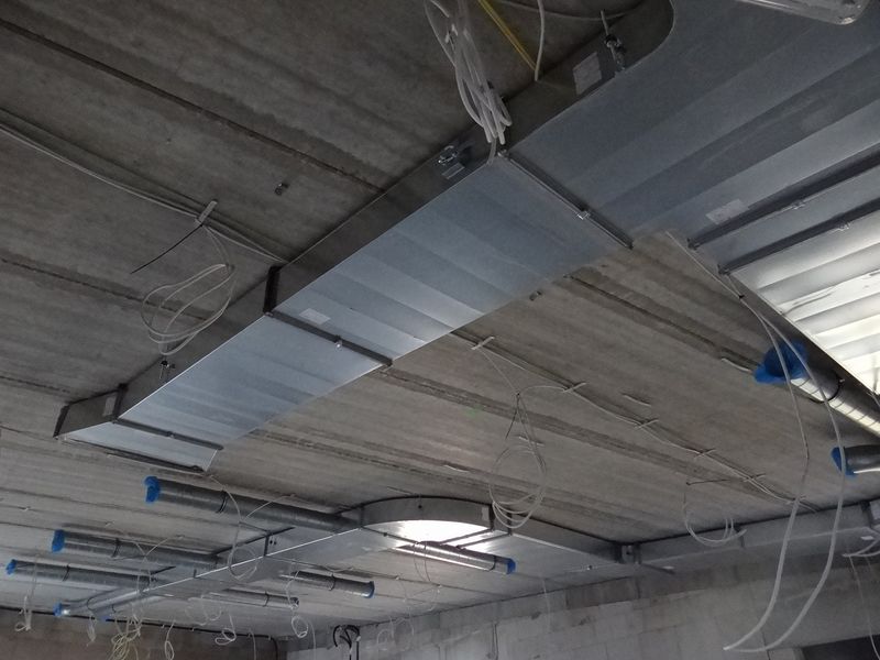 Stand Februar 2018: Lüftungsanlage: Montage der Zentralgeräte für dem Süd- und Nordtrakt mit den dazugehörigen Zuluft-/Fortluftleitungen unterhalb der Decken. Fertigstellung der Elektro- und Sanitärinstallation (Rohbau).